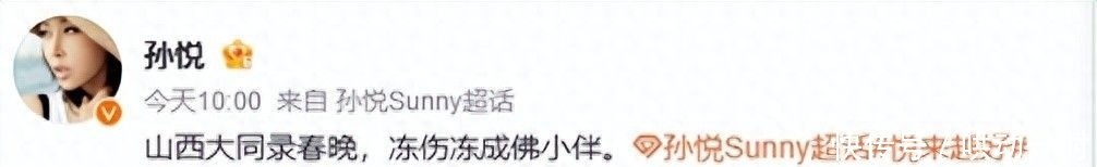 近日,孙悦在个人微博准时更新动态,一句 “山西大同录春晚,冻伤冻成佛小伴” 瞬间让评论区炸开了锅。